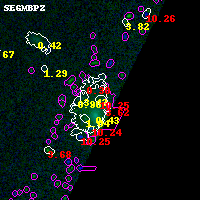 Black segments are analyzed here. Roll mouse over color images to view segments. Best viewed in a wide browser window (1200 pixels or more). Download SED & P(z) plots to view larger versions.