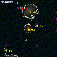 Black segments are analyzed here. Roll mouse over color images to view segments. Best viewed in a wide browser window (1200 pixels or more). Download SED & P(z) plots to view larger versions.