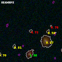 Black segments are analyzed here. Roll mouse over color images to view segments. Best viewed in a wide browser window (1200 pixels or more). Download SED & P(z) plots to view larger versions.