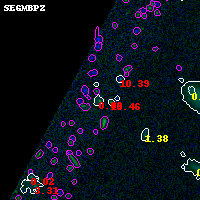 Black segments are analyzed here. Roll mouse over color images to view segments. Best viewed in a wide browser window (1200 pixels or more). Download SED & P(z) plots to view larger versions.