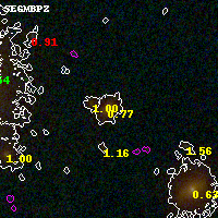 Black segments are analyzed here. Roll mouse over color images to view segments. Best viewed in a wide browser window (1200 pixels or more). Download SED & P(z) plots to view larger versions.