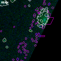 Black segments are analyzed here. Roll mouse over color images to view segments. Best viewed in a wide browser window (1200 pixels or more). Download SED & P(z) plots to view larger versions.