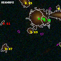 Black segments are analyzed here. Roll mouse over color images to view segments. Best viewed in a wide browser window (1200 pixels or more). Download SED & P(z) plots to view larger versions.