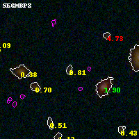 Black segments are analyzed here. Roll mouse over color images to view segments. Best viewed in a wide browser window (1200 pixels or more). Download SED & P(z) plots to view larger versions.