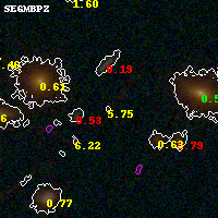Black segments are analyzed here. Roll mouse over color images to view segments. Best viewed in a wide browser window (1200 pixels or more). Download SED & P(z) plots to view larger versions.
