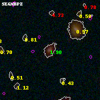 Black segments are analyzed here. Roll mouse over color images to view segments. Best viewed in a wide browser window (1200 pixels or more). Download SED & P(z) plots to view larger versions.