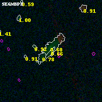 Black segments are analyzed here. Roll mouse over color images to view segments. Best viewed in a wide browser window (1200 pixels or more). Download SED & P(z) plots to view larger versions.