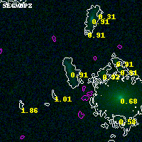 Black segments are analyzed here. Roll mouse over color images to view segments. Best viewed in a wide browser window (1200 pixels or more). Download SED & P(z) plots to view larger versions.