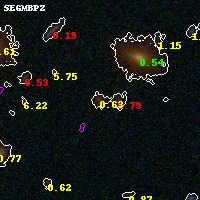 Black segments are analyzed here. Roll mouse over color images to view segments. Best viewed in a wide browser window (1200 pixels or more). Download SED & P(z) plots to view larger versions.