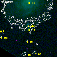 Black segments are analyzed here. Roll mouse over color images to view segments. Best viewed in a wide browser window (1200 pixels or more). Download SED & P(z) plots to view larger versions.