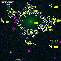 Black segments are analyzed here. Roll mouse over color images to view segments. Best viewed in a wide browser window (1200 pixels or more). Download SED & P(z) plots to view larger versions.
