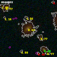 Black segments are analyzed here. Roll mouse over color images to view segments. Best viewed in a wide browser window (1200 pixels or more). Download SED & P(z) plots to view larger versions.