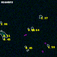 Black segments are analyzed here. Roll mouse over color images to view segments. Best viewed in a wide browser window (1200 pixels or more). Download SED & P(z) plots to view larger versions.
