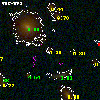 Black segments are analyzed here. Roll mouse over color images to view segments. Best viewed in a wide browser window (1200 pixels or more). Download SED & P(z) plots to view larger versions.
