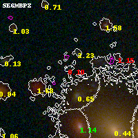 Black segments are analyzed here. Roll mouse over color images to view segments. Best viewed in a wide browser window (1200 pixels or more). Download SED & P(z) plots to view larger versions.