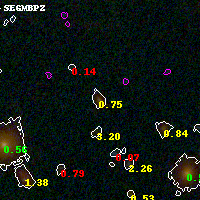 Black segments are analyzed here. Roll mouse over color images to view segments. Best viewed in a wide browser window (1200 pixels or more). Download SED & P(z) plots to view larger versions.