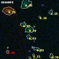 Black segments are analyzed here. Roll mouse over color images to view segments. Best viewed in a wide browser window (1200 pixels or more). Download SED & P(z) plots to view larger versions.