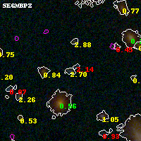 Black segments are analyzed here. Roll mouse over color images to view segments. Best viewed in a wide browser window (1200 pixels or more). Download SED & P(z) plots to view larger versions.