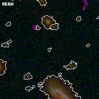 Black segments are analyzed here. Roll mouse over color images to view segments. Best viewed in a wide browser window (1200 pixels or more). Download SED & P(z) plots to view larger versions.