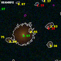 Black segments are analyzed here. Roll mouse over color images to view segments. Best viewed in a wide browser window (1200 pixels or more). Download SED & P(z) plots to view larger versions.