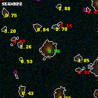 Black segments are analyzed here. Roll mouse over color images to view segments. Best viewed in a wide browser window (1200 pixels or more). Download SED & P(z) plots to view larger versions.