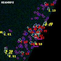Black segments are analyzed here. Roll mouse over color images to view segments. Best viewed in a wide browser window (1200 pixels or more). Download SED & P(z) plots to view larger versions.