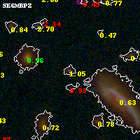 Black segments are analyzed here. Roll mouse over color images to view segments. Best viewed in a wide browser window (1200 pixels or more). Download SED & P(z) plots to view larger versions.
