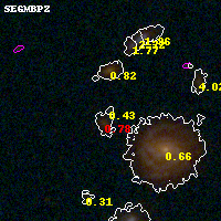 Black segments are analyzed here. Roll mouse over color images to view segments. Best viewed in a wide browser window (1200 pixels or more). Download SED & P(z) plots to view larger versions.