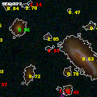 Black segments are analyzed here. Roll mouse over color images to view segments. Best viewed in a wide browser window (1200 pixels or more). Download SED & P(z) plots to view larger versions.