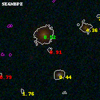 Black segments are analyzed here. Roll mouse over color images to view segments. Best viewed in a wide browser window (1200 pixels or more). Download SED & P(z) plots to view larger versions.