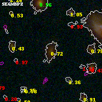 Black segments are analyzed here. Roll mouse over color images to view segments. Best viewed in a wide browser window (1200 pixels or more). Download SED & P(z) plots to view larger versions.