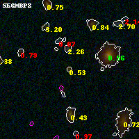 Black segments are analyzed here. Roll mouse over color images to view segments. Best viewed in a wide browser window (1200 pixels or more). Download SED & P(z) plots to view larger versions.
