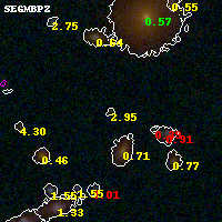 Black segments are analyzed here. Roll mouse over color images to view segments. Best viewed in a wide browser window (1200 pixels or more). Download SED & P(z) plots to view larger versions.