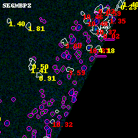 Black segments are analyzed here. Roll mouse over color images to view segments. Best viewed in a wide browser window (1200 pixels or more). Download SED & P(z) plots to view larger versions.