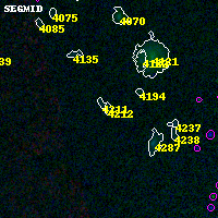 Black segments are analyzed here. Roll mouse over color images to view segments. Best viewed in a wide browser window (1200 pixels or more). Download SED & P(z) plots to view larger versions.