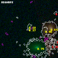 Black segments are analyzed here. Roll mouse over color images to view segments. Best viewed in a wide browser window (1200 pixels or more). Download SED & P(z) plots to view larger versions.