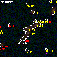Black segments are analyzed here. Roll mouse over color images to view segments. Best viewed in a wide browser window (1200 pixels or more). Download SED & P(z) plots to view larger versions.