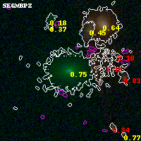 Black segments are analyzed here. Roll mouse over color images to view segments. Best viewed in a wide browser window (1200 pixels or more). Download SED & P(z) plots to view larger versions.