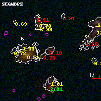 Black segments are analyzed here. Roll mouse over color images to view segments. Best viewed in a wide browser window (1200 pixels or more). Download SED & P(z) plots to view larger versions.