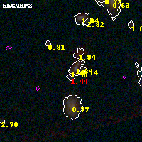 Black segments are analyzed here. Roll mouse over color images to view segments. Best viewed in a wide browser window (1200 pixels or more). Download SED & P(z) plots to view larger versions.