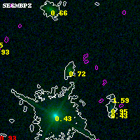 Black segments are analyzed here. Roll mouse over color images to view segments. Best viewed in a wide browser window (1200 pixels or more). Download SED & P(z) plots to view larger versions.