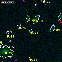Black segments are analyzed here. Roll mouse over color images to view segments. Best viewed in a wide browser window (1200 pixels or more). Download SED & P(z) plots to view larger versions.