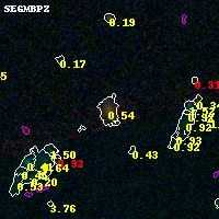 Black segments are analyzed here. Roll mouse over color images to view segments. Best viewed in a wide browser window (1200 pixels or more). Download SED & P(z) plots to view larger versions.