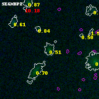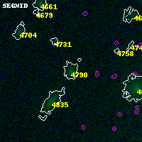 Black segments are analyzed here. Roll mouse over color images to view segments. Best viewed in a wide browser window (1200 pixels or more). Download SED & P(z) plots to view larger versions.