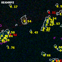 Black segments are analyzed here. Roll mouse over color images to view segments. Best viewed in a wide browser window (1200 pixels or more). Download SED & P(z) plots to view larger versions.