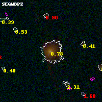 Black segments are analyzed here. Roll mouse over color images to view segments. Best viewed in a wide browser window (1200 pixels or more). Download SED & P(z) plots to view larger versions.