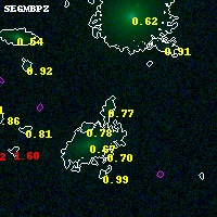 Black segments are analyzed here. Roll mouse over color images to view segments. Best viewed in a wide browser window (1200 pixels or more). Download SED & P(z) plots to view larger versions.
