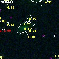 Black segments are analyzed here. Roll mouse over color images to view segments. Best viewed in a wide browser window (1200 pixels or more). Download SED & P(z) plots to view larger versions.