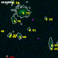 Black segments are analyzed here. Roll mouse over color images to view segments. Best viewed in a wide browser window (1200 pixels or more). Download SED & P(z) plots to view larger versions.
