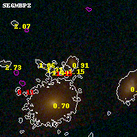 Black segments are analyzed here. Roll mouse over color images to view segments. Best viewed in a wide browser window (1200 pixels or more). Download SED & P(z) plots to view larger versions.